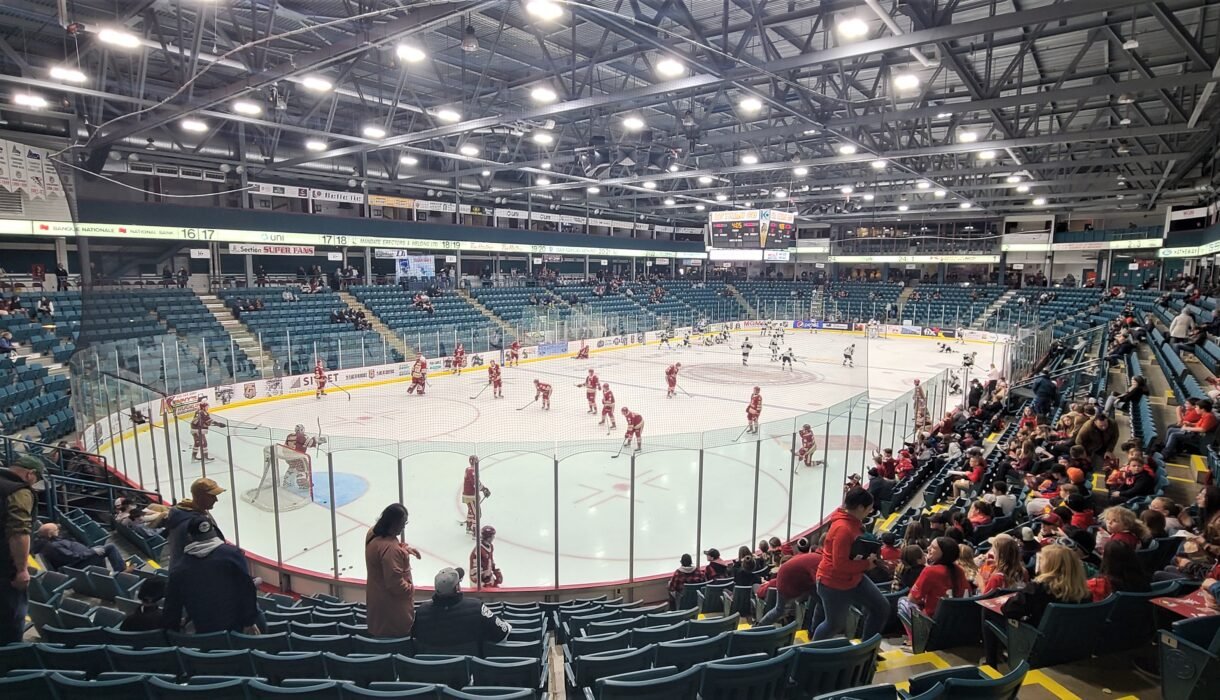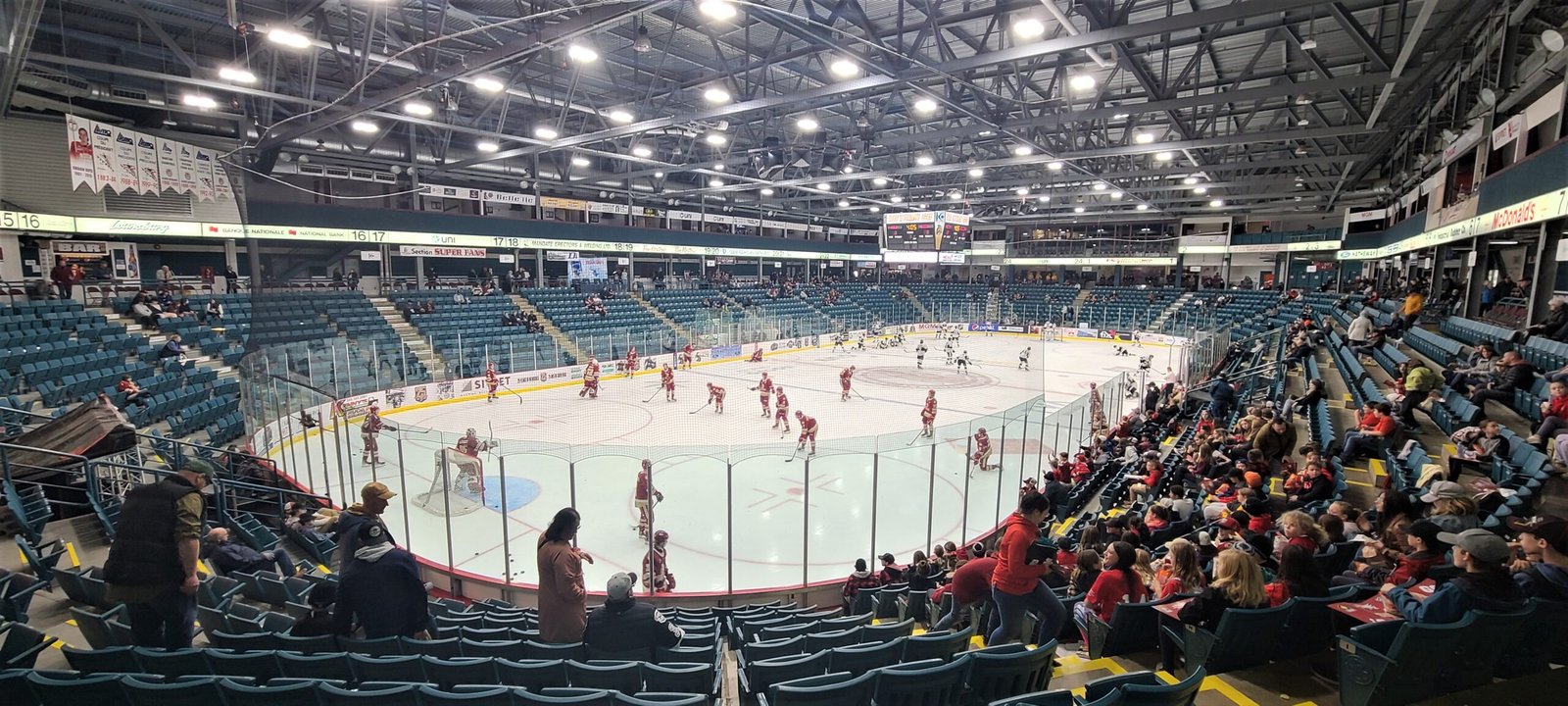 The KC Irving Centre inside is also like many other rinks you see across the country. It is your typical clone rink with a small bowl of seats all around the ice and an open concourse on top. The bowl here, however, is smaller than in your typical clone rinks across the CHL as total capacity is about 3,500. It is also a bit more barebones than most rinks in the CHL. The concourse is a bit narrow, but more than adequate for the crowd of near 1,800 we had. Only one main concession stand for food was open with the other being closed. Add in a few drinks-only stands in the corners and that’s about it.