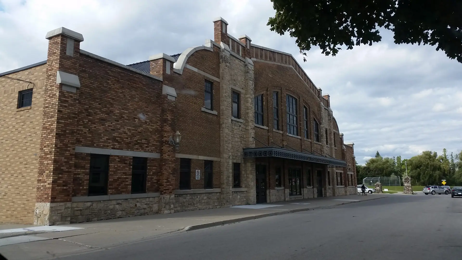 The title of oldest hockey arena in the world is a disputed one. A quick google search will tell you that the oldest is Matthews Arena in Boston. That arena originally opened in 1910 but was destroyed by fire and its current replacement opened its doors on New Years Day 1922. That same month the Galt Arena Gardens in modern day Cambridge, Ontario opened and claims the title of oldest continuously operating hockey arena in the world (they even have a banner stating said claim). The arena sits in what was the town of Galt which amalgamated with other nearby towns into the city of Cambridge, Ontario. The rink is in the south end of the city in a quiet neighborhood that feels secluded from the hustle and bustle of town. It has two small parking lots on either side as well as some nearby baseball diamonds. Directly across the street just feet from the main entrance sits a row of houses. This can make taking photos of the gorgeous front facade a tad difficult.