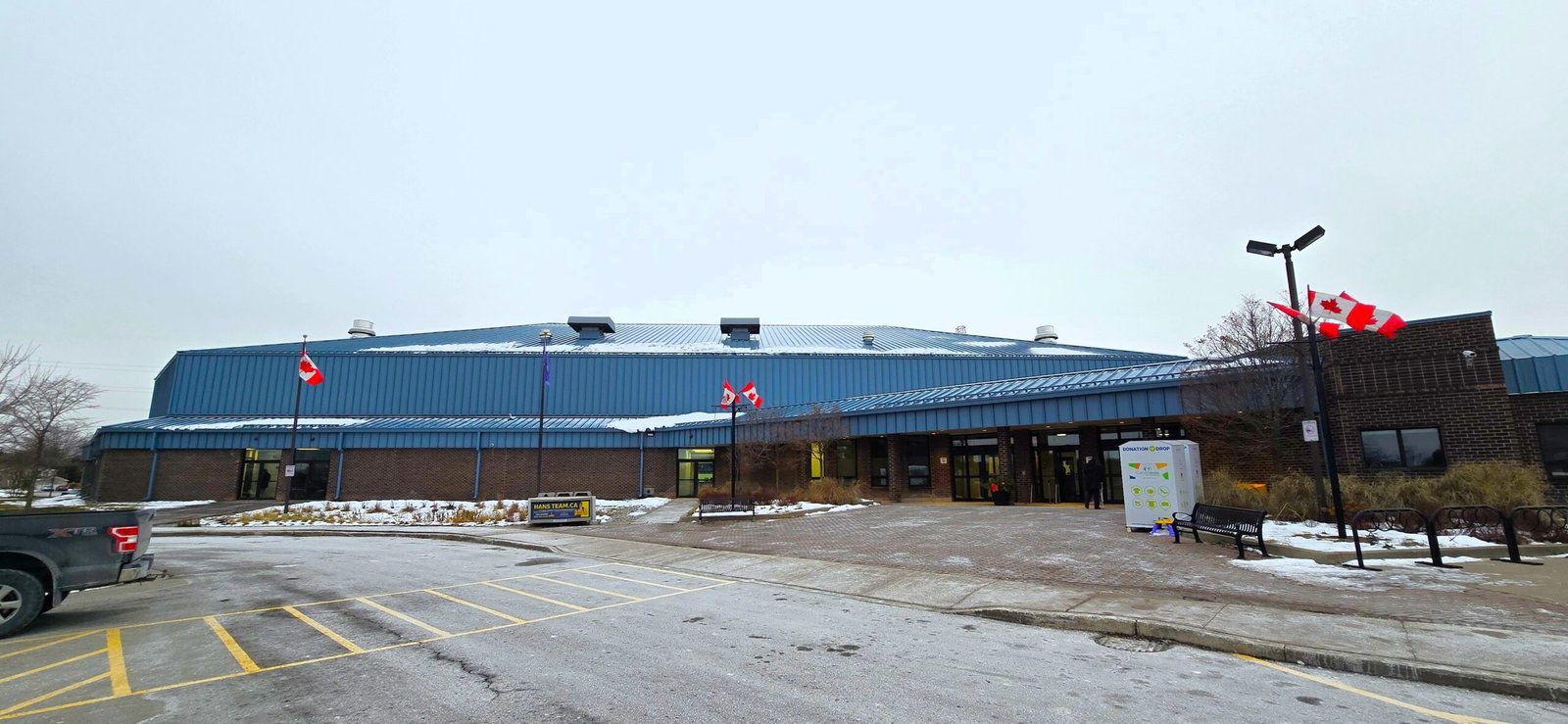 The Ray Twinney Recreation Complex is located on the western side of Newmarket surrounded by parking lots, sports fields and a quiet residential neighbourhood. The rink, which opened in 1985, is named after a former mayor of the city and was originally done up in a hideous mustard yellow siding, has thankfully been redone in a more pleasing sky blue colour. Soon after the arena opened the Toronto Maple Leafs moved their AHL affiliate from St. Catharines to Newmarket and the AHL’s Saints played out of Ray Twinney from 1986 to 1991 before moving to St. John’s, Newfoundland where they found much greater success. After the AHL left, the OHL soon followed as the very successful Cornwall Royals moved in during the summer of 1992. The Royals played here for two seasons. The first was fairly competitive but the second was a total disaster as the team went winless on the road and finished in last place. The team didn’t do so well at the gate either, and in 1994 they moved to Sarnia to become the Sting where they remain today.