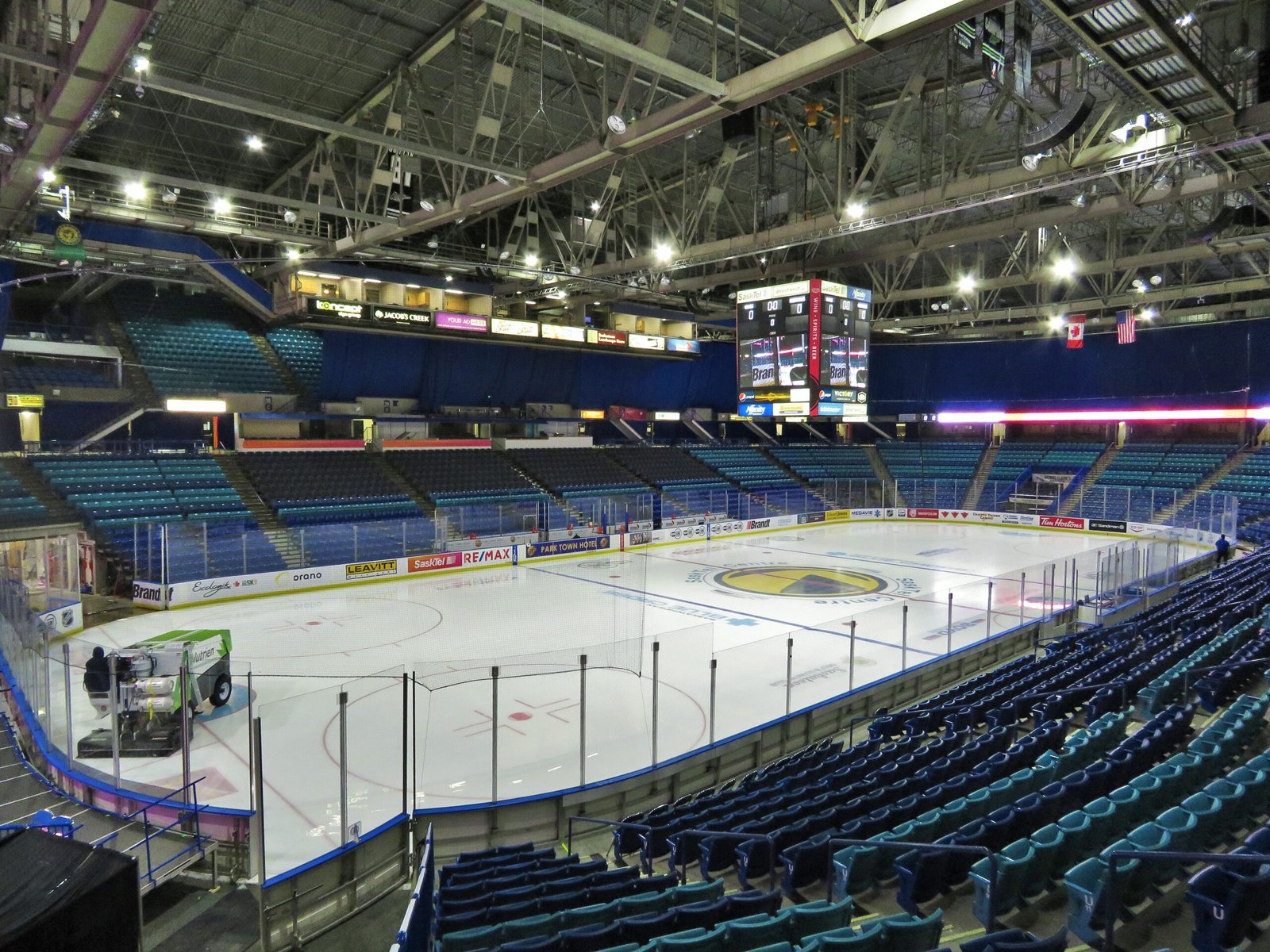 SaskTel Centre was built like many other large arenas in the 1980s, in a coliseum style setup with just one single concourse for two bowls. Suites were added later, which meant the concourse got narrower, and with an even close to large crowd it can take a while to get around. The rink is almost an exact copy of Copps Coliseum in Hamilton, except at one end of the building in each corner there is a section missing from the upper bowl. Why it was designed that way I am not sure. On the bench side of the ice the press box hangs down from the rafters, so seats more than halfway up the upper bowl on that side are obstructed view.