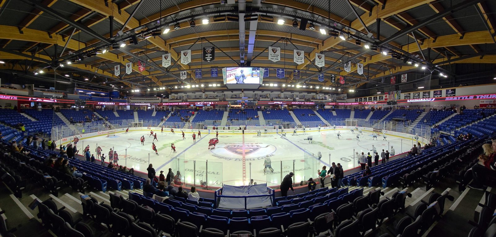 When the Vancouver Giants started as an expansion team in 2001, they played at the old Pacific Coliseum in Vancouver. While the team seemed to do well there and actually set the all-time tournament-long attendance record for the Memorial Cup in 2007, the decision was eventually made to leave the giant old coliseum in 2016 and move to Langley, a Vancouver suburb some 35km southeast. The team wanted a venue that in the end might be more of an appropriate-size, game-in game-out, during the long regular season of the WHL. It sits just a few minutes’ drive off the Trans-Canada highway in a major sports complex, surrounded by soccer fields, tennis, basketball and volleyball courts and pavilions to make it a recreation wonderland for all sports. The Langley Events Centre itself doesn’t just have the rink for the Giants (and other hockey teams) but also has several indoor basketball courts including one that hosts the USports Trinity Western Spartans. The front facade of the arena screams BC, with lots of timber-looking accents that helps liven up what would be otherwise the exterior of many other rinks/entertainment centres across the CHL.