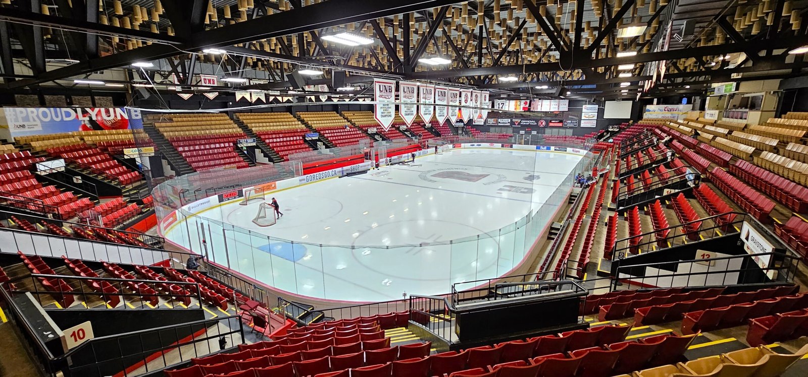 The Aitken Centre was built in 1976 on the ground of the University of New Brunswick and has been home to the powerhouse UNB Reds hockey program ever since. It also hosted the university’s basketball teams until their own facility was constructed in 2011. In the 1980’s and 90’s the Maritimes were a big territory for the American Hockey League, and the Aitken Centre was home to two different AHL teams during those decades. First the Fredericton Express (from 1981 to 1988) who were affiliated with the Quebec Nordiques, and then the Fredericton Canadiens who were the Habs’ farm team from 1990 to 1999. Starting in the mid 90s AHL teams started moving out of Atlantic Canada to get closer to their NHL affiliates along the US east coast. As an AHL team would leave, a QMJHL team would quickly take their place in the market, and by the mid 2000’s all the former AHL cities in Atlantic Canada now had QMJHL teams. Except Fredericton. While no official reason has ever been given for this, the prevailing thought has been that while the Q would love to be in Fredericton, the University owns the building, and their Reds are the biggest game in town. If they allowed the Q to come in permanently it would hurt the Reds greatly. That said, the nearby QMJHL Moncton Wildcats have played some games here over the years, usually during the first round of the playoffs when their old home the Coliseum was booked for trade shows. The Saint John Sea Dogs also have three “home games” scheduled for the Aitken Centre in 2025-26. But for now the Reds are the highest level of hockey for the city of Fredericton.