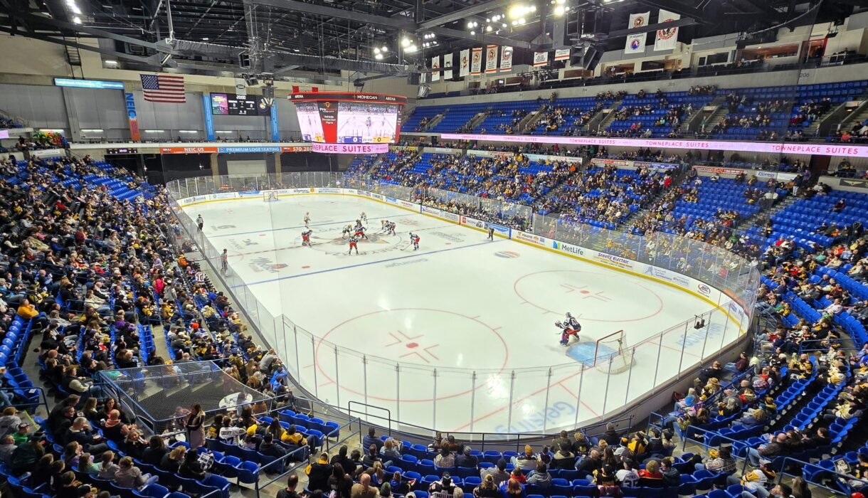 The centre ice videoboard is used well enough but only uses the score bug from the tv/internet broadcast to show the score. Thankfully there is a big scoreboard hung on the wall at the top of the U, which was much clearer to read. The building I found myself comparing Mohegan Arena to the most was the Spokane Arena of the WHL. However, I liked Spokane a bit better. Wilkes-Barre just felt a tad more spartan and drab; just a little less interesting. The game we saw in Wilkes-Barre was only about half full, but the crowd noise was pretty decent. In the past the AHL Pens have managed to sell this building out on a regular basis, and they even have a banner boasting 39 straight sell outs at some point in the past. 25 years is a long time for an AHL team to not only stay in one spot but keep the same identity and affiliation with a single NHL parent club. While the crowd we saw wasn’t overly impressive (perhaps due to the lack of team success, especially in the last decade) it seems the twin cities of Wilkes-Barre/Scranton have been a great spot for the AHL this last quarter century, and will continue to be into the future. They have a fine building to watch hockey in, and while it may belong right in the middle of most ranked lists, it’s probably not a bad one to go to week in week out if you’re part of the Pens faithful.