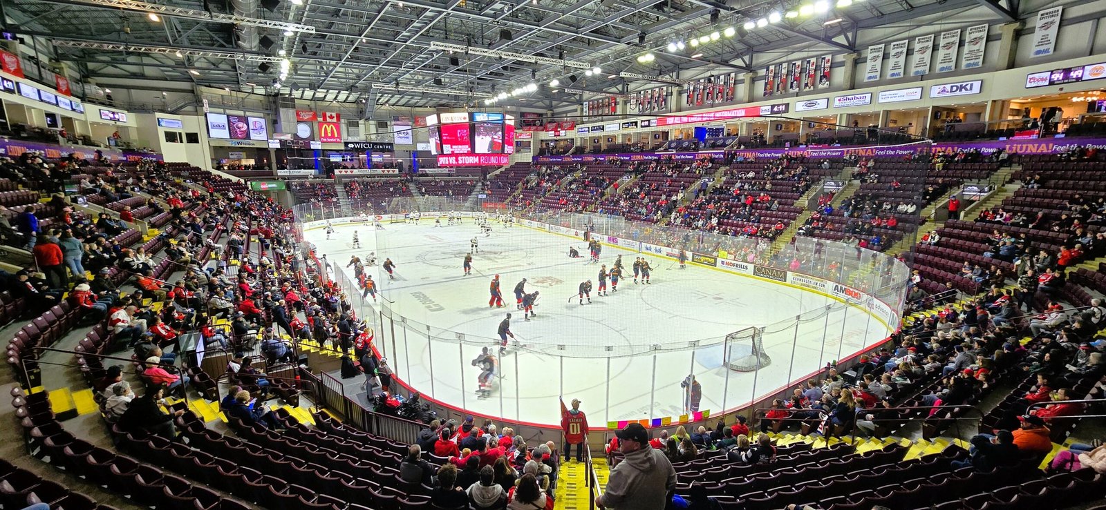 The WFCU Centre sits in the ever-expanding east end of Windsor near the border of Tecumseh, and is surrounded by parking lots and Mickey Renaud Way, named after the late Spitfires captain who passed away in 2008. The place is just huge and dominates the area all around it; not just the 6,500-seat main arena but the other ice pads and halls attached to it as well. When the rink opened at the end of 2008 it felt really isolated, but as the years have gone by a new subdivision has popped up beside it as well as some apartment buildings. Unfortunately, there isn’t much in the way of pre or post-game meet up spots within walking distance. One of my favourite spots for wings in the entire OHL is Average Joe’s Sports Bar on nearby Lauzon Rd, but it is a good 15 minute walk.