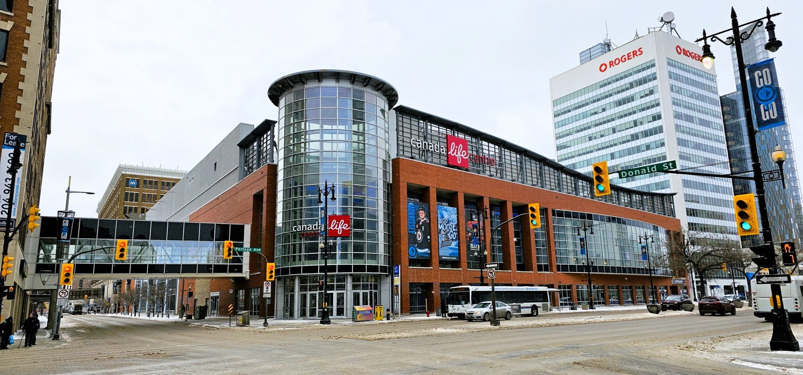Canada Life Centre is located in the heart of downtown Winnipeg. It’s a red brick building that’s meant to take inspiration from the old flagship Eaton’s Store that stood in its place, until being torn down in the early 2000s to make way for what is now the home of the returned Winnipeg Jets. There are pedestrian bridges attaching it to several buildings around it, and I noticed many more through downtown Winnipeg. This photo was taken less than an hour into my first trip inside Manitoba, so I don’t know much of the history and why things are laid out the way they are, but I would assume it’s to help people stay inside away from their harsh winters. Outside sits a statue of former a Jet great, the late Dale Hawerchuk, which is fantastic.