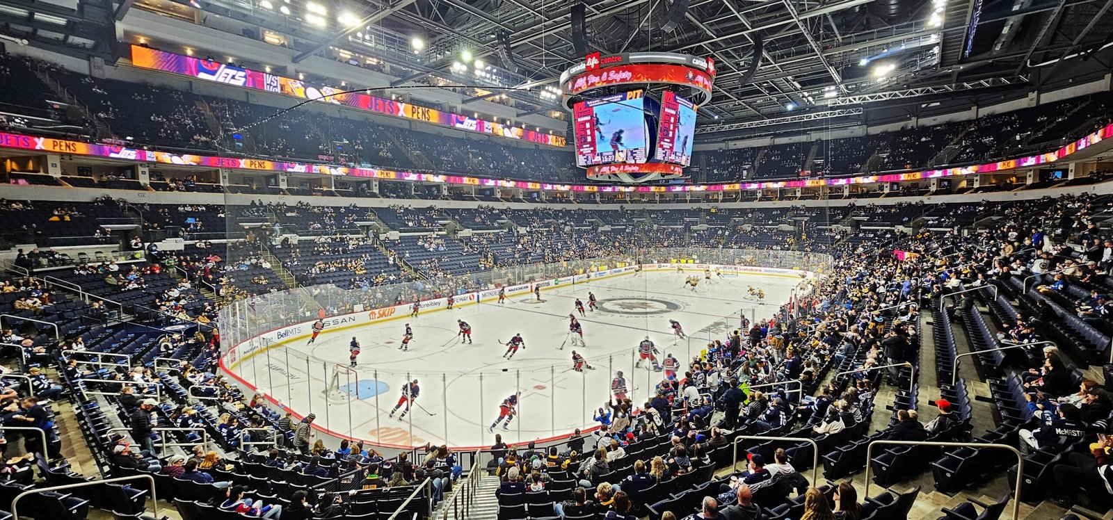 Canada Life Centre is the smallest building in the NHL. With only 15,000 seats, it means even at the back row (which this picture is from) has a great view of the ice. Some seats along the side at the top of the upper bowl have an obstructed view of the scoreboard thanks to the overhanging press box, but otherwise there isn’t a bad seat in the house. The video board, while not nearly as massive as some in the league, is about the perfect side for the building. The lower bowl is steeper than most buildings of its size. The upper bowl is steep as well and it makes every seat so much closer to the ice than many other buildings in the NHL (that I’ve been to).